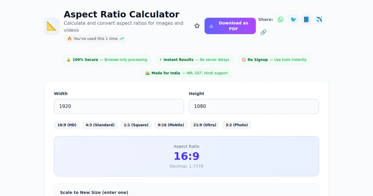 Here's why thousands of Indians use Aspect Ratio Calculator on SabTools.in every day: