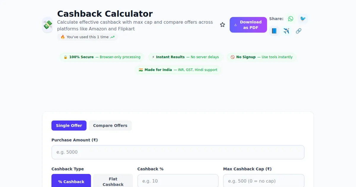 Here's why thousands of Indians use Cashback Calculator on SabTools.in every day: