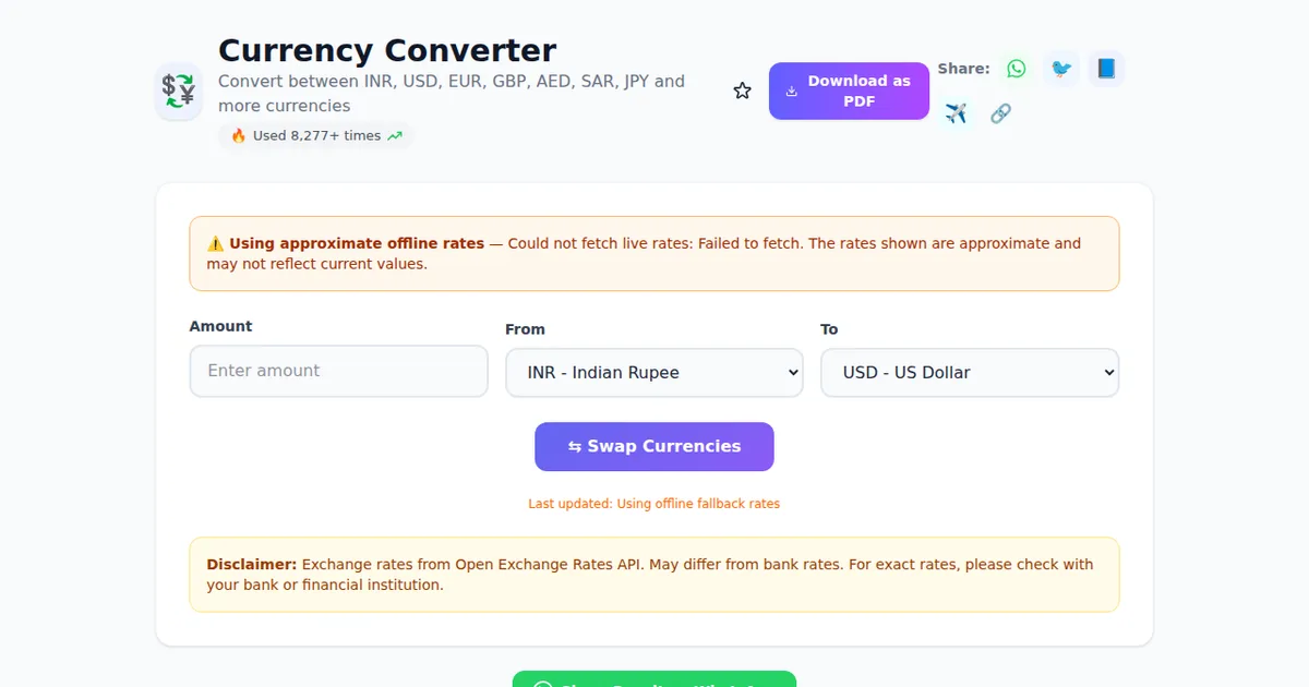 With over 460+ free tools available on SabTools.in, Currency Converter is one of the most popular choices among Indian users. Whether you're a student, professional, or business owner, this tool helps you save time and get accurate results instantly. No registration, no fees — just open and use.
