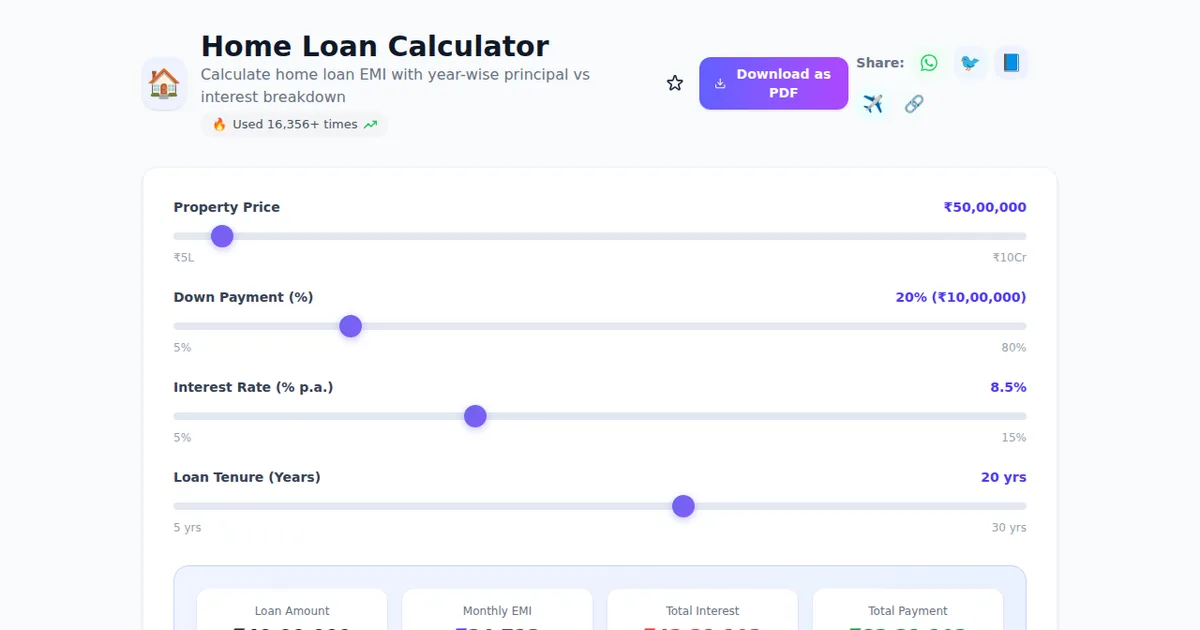 In this complete guide, we'll show you everything about Home Loan Calculator — how it works, key features, step-by-step instructions, expert tips, and answers to frequently asked questions. Whether you're in India or anywhere else, this tool is built to save you time and deliver accurate results.