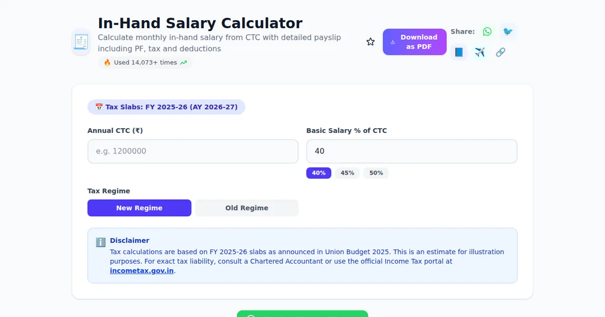 Try In-Hand Salary Calculator Free — No Signup Required →