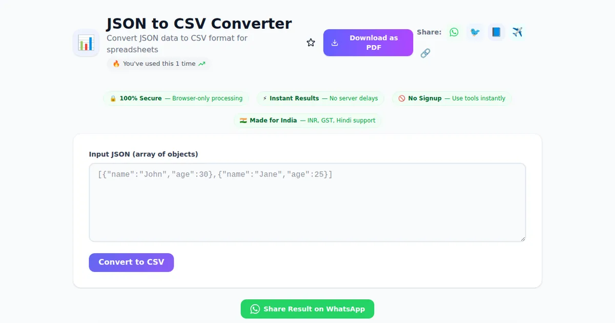 Here's why thousands of Indians use JSON to CSV Converter on SabTools.in every day: