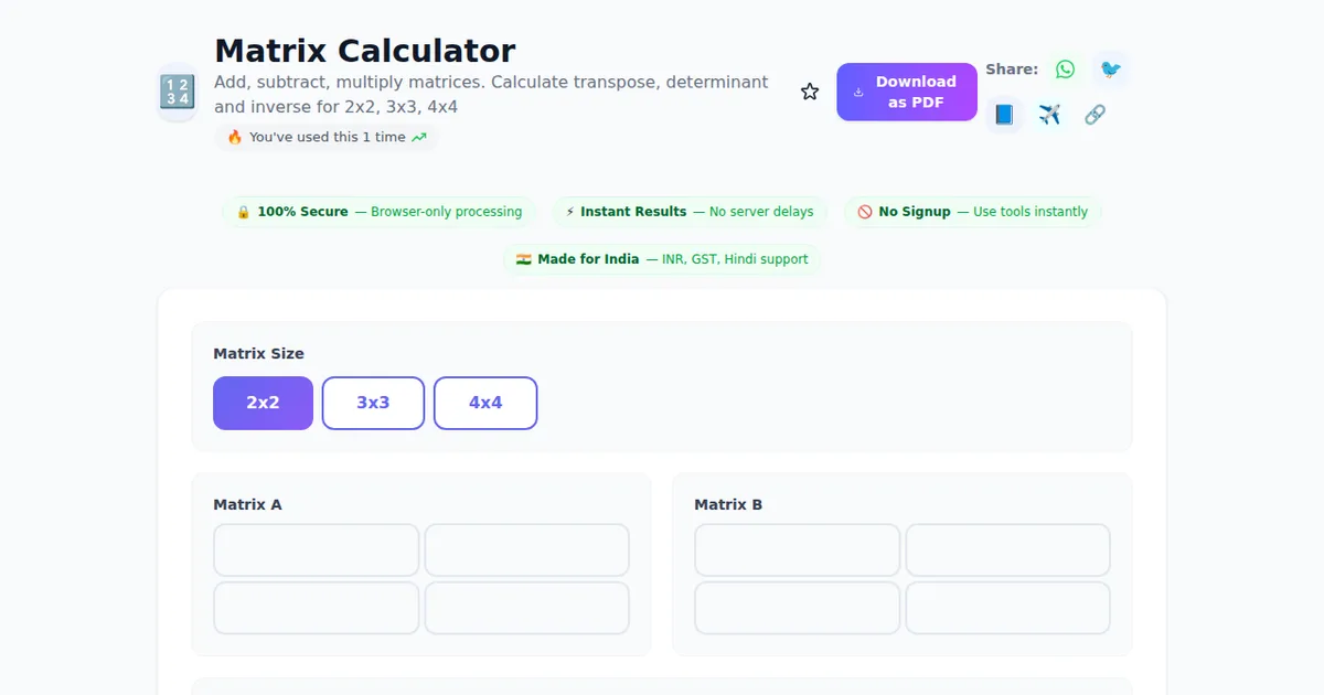 Here's why thousands of Indians use Matrix Calculator on SabTools.in every day: